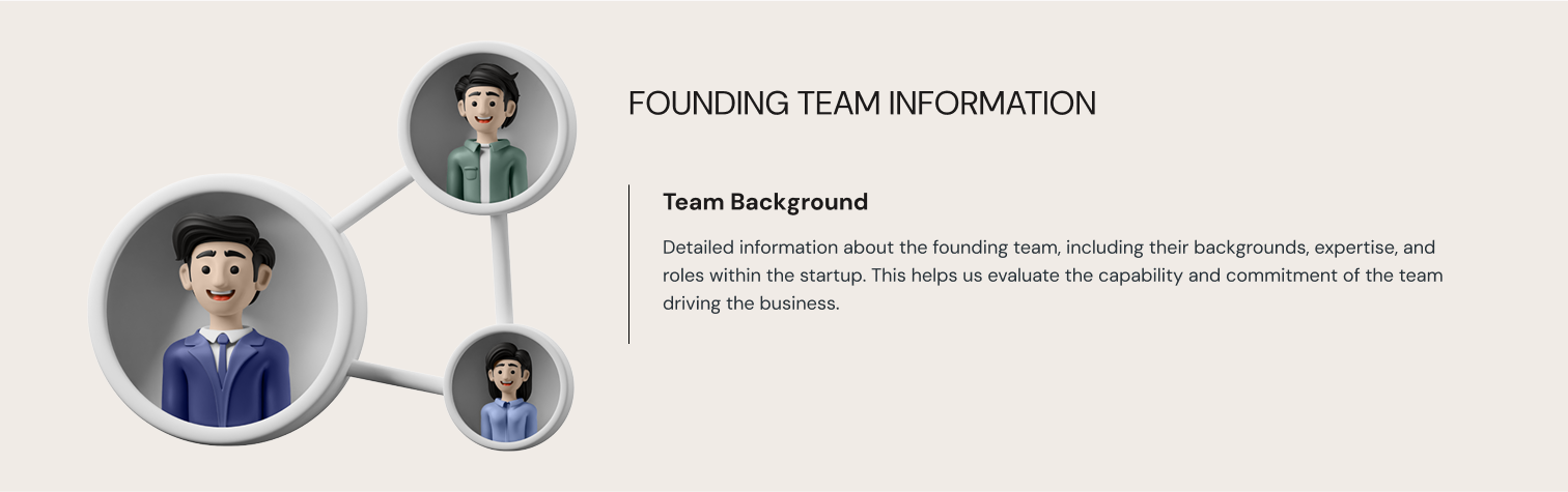 Detailed information about the founding team, including their backgrounds, expertise, and roles within the startup. This helps us evaluate the capability and commitment of the team driving the business.